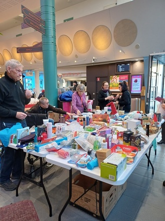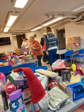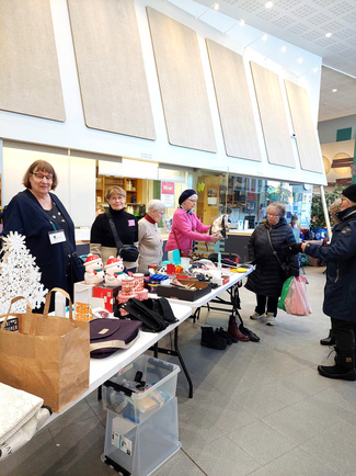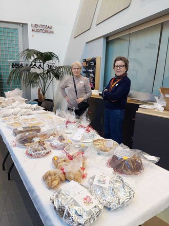 ![]() Joulumyyjäiset la 22.11.2025 Kanneltalon aulassa. Arvonnan pääpalkinto, herkkukori | ![]() Kanneltalon aula la 22.11.2025 tarjosi hyvän näkyvyyden |