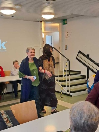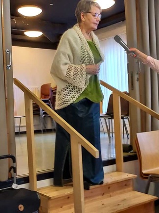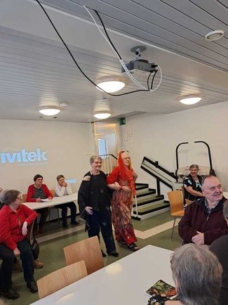 ![]() Fardoos Helal kertoi 3.11.2025 Syyriasta, hänen entisestä kotimaasta. Hän oli tullut Suomeen 2009. | ![]() Syyrian historia kiinnosti |