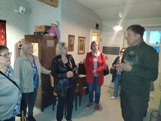 ![]() Opas rintamamuseolla. Porukka jaettiin 2 ryhmään. | ![]() |